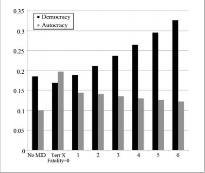 论证:因为“民主国家”重视领土的历史纽带、象征价值等公共利益层面上的意义,容易团结民众;与此同时,公众压力和支持也驱动着国内的政治生活。所以,当一个“民主国家”卷入领土冲突时,国内民众就会将冲突视为一种高度威胁,即不仅是土地,还包括国家身份。而领土问题受到其他国家的威胁时,人们对国内少数群体的容忍度会降低,内部凝聚力会增强,以此对抗那些被视为潜在威胁的团体,从而增强国内的政治支持。在这种情况下,当公众被动员起来支持冲突时,政府可以通过使用压制手段作为冲突中争夺领土的一部分,来提高国民的安全感,获得国内政治利益。并且随着各国经历更多致命的冲突,这种机制可能会变得更强大。
