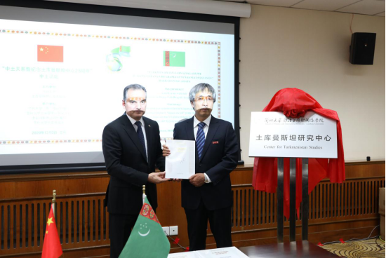 论坛期间,土库曼斯坦驻华大使巴拉哈特·杜尔德耶夫和兰州大学副校长沙勇忠共同为兰州大学土库曼斯坦研究中心揭牌。甘肃省人民政府外事办公室副主任朱继君、中国石油天然气集团有限公司外事局副局长曹伟现场见证此次揭牌仪式。兰州大学土库曼斯坦研究中心于2020年7月成立,前身是王四海教授于2014年创办的民间组织“楚天-中国土库曼斯坦研究中心”,宗旨是向中国公众介绍土库曼斯坦基本国情及国家发展成就、推动中土两国民间文化交流、增进中土两国人民间友谊,为中国“一带一路”建设营建社会公众基础。