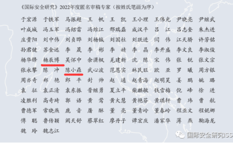 应《国际安全研究》编辑部邀请,我院曾向红教授、陈小鼎教授和杨辰博副教授担任《国际安全研究》2023年度匿名审稿专家。