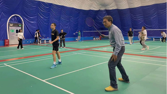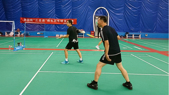 会后,为提升学院新生对学院归属感,并促进我院教师与新生之间交流互动,增进相互了解,我院于下午6:00在榆中校区穹顶羽毛球馆举行“三走进”师生羽毛球友谊赛。学院党委副书记贾海燕老师、王四海教授、王术森博士、科研秘书张旖旎老师及本科生辅导员田歌老师参加本次活动,与学院部分2022、2023级本科生进行交流切磋,学院党委书记常虹和我院部分同学到场观赛。