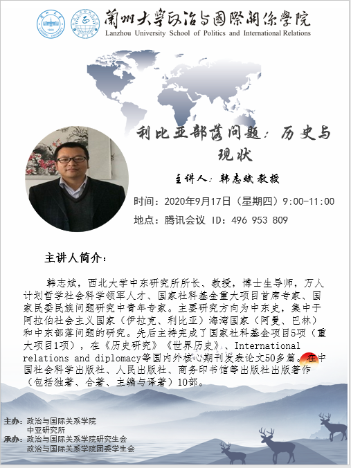 应j9九游会登陆、兰州大学中亚研究所邀请,西北大学中东研究所所长韩志斌教授为我校师生做线上学术讲座。欢迎广大师生届时参加!