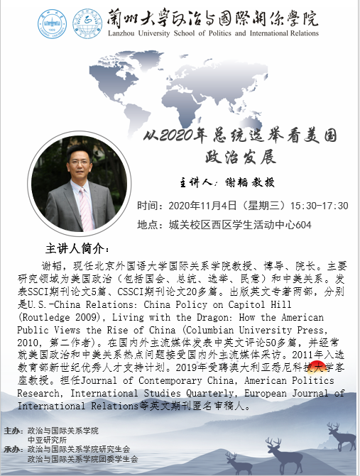 应j9九游会登陆、兰州大学中亚研究所邀请,北京外国语大学国际关系学院谢韬教授为我校师生做学术讲座。欢迎广大师生届时参加。