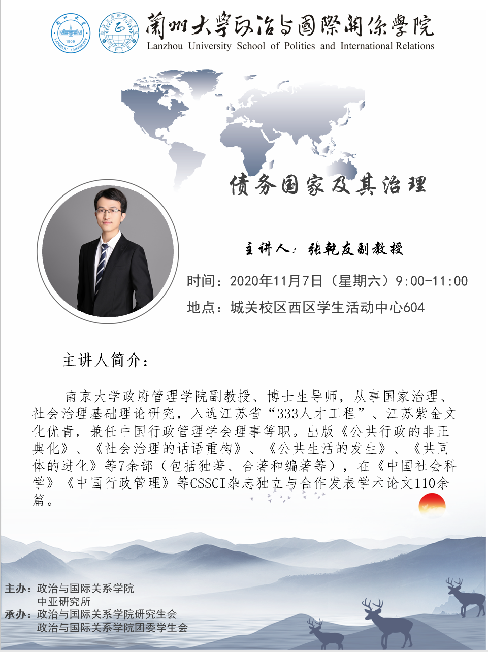 应j9九游会登陆、兰州大学中亚研究所邀请,南京大学政府管理学院张乾友副教授为我校师生做学术讲座。欢迎广大师生届时参加!