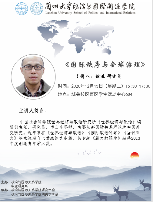 应j9九游会登陆、兰州大学中亚研究所邀请,中国社会科学院研究员徐进为我校师生做学术讲座。欢迎广大师生届时参加!