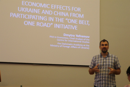 In the afternoon, the keynote speaker, Dr.Dmytro Yefremov described economic effects for Ukraine and China from participating in the One Belt and One Road Initiative at three levels: low, medium and high. He pointed out that operating costs of One Belt One Road Initiative affect the countries along the road directly.