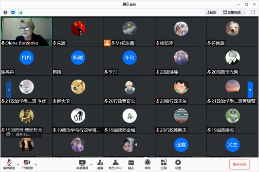 讲座最后,耶列娜研究员与学生们就专业问题积极交流意见,并对学生和学院的发展表达诚挚的祝福。此次讲座有助于我院同学深入了解中国与乌克兰的发展现状,对于我院同学们开展“一带一路”、中乌合作的相关研究极具启发意义。至此,本次讲座圆满结束。