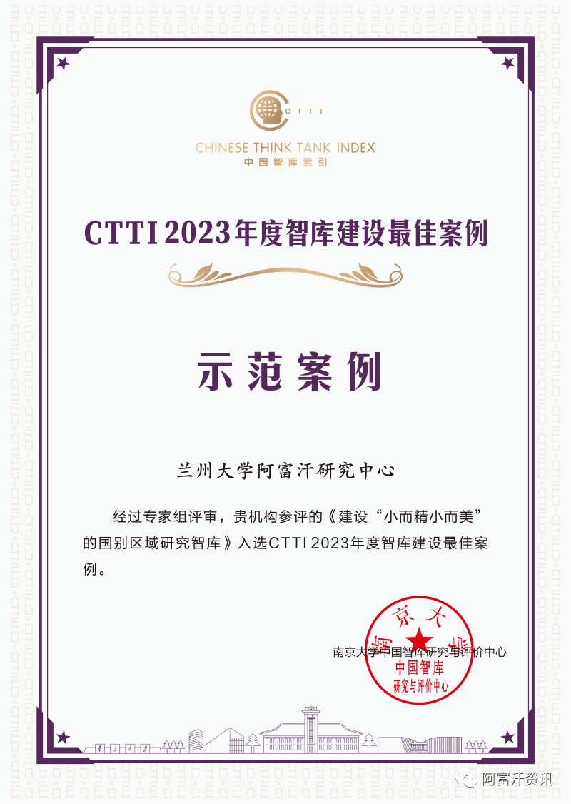 由中心主任朱永彪教授、武兵科讲师等共同撰写的《阿富汗2023年局势系列研究报告》荣获优秀成果“特等奖”。