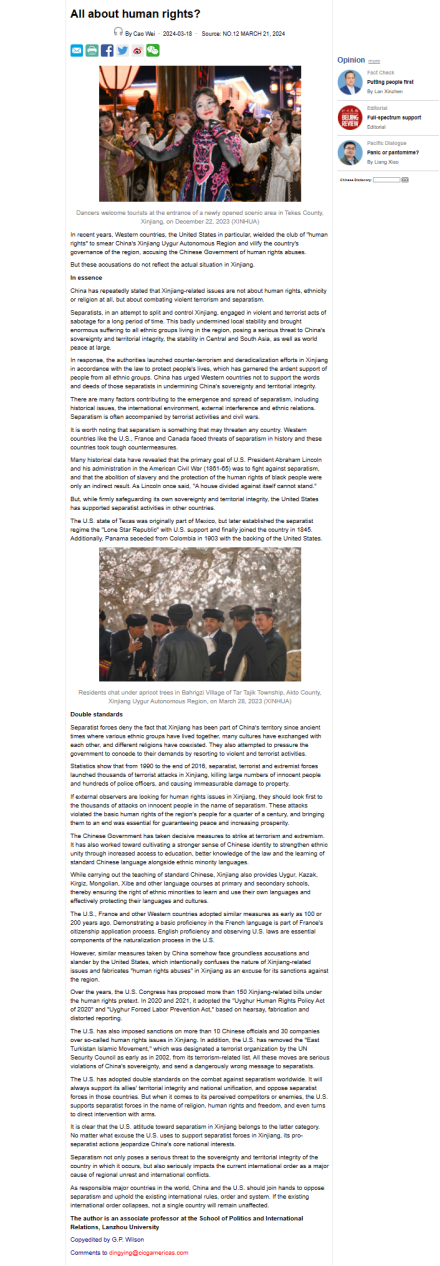 原文详见:All About Human Rights?-- Beijing Review https://www.bjreview.com/Opinion/Voice/202403/t20240318_800360484.html