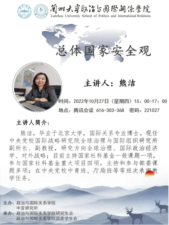应兰州大学中亚研究所、j9九游会登陆邀请,中央党校国际战略研究院全球治理与国际组织研究所副所长、副教授熊洁为我校师生做学术讲座。